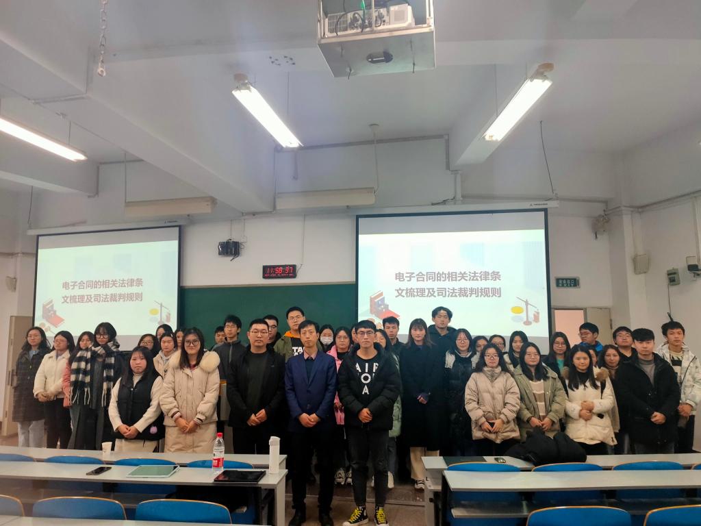 为提高公司师生的法律意识,大力弘扬法治精神,加深同学们对法律实务的理解,奠定日后的工作基础,2022年3月11日,太阳成集团tyc151cc邀请重庆市第五中级人民法院民二庭副庭长赵克博士在慧智楼90326举行了以“电子合同实务及司法裁判规则”为主题的课程,公司李鹏飞老师及法学专业的同学出席了本次课程。