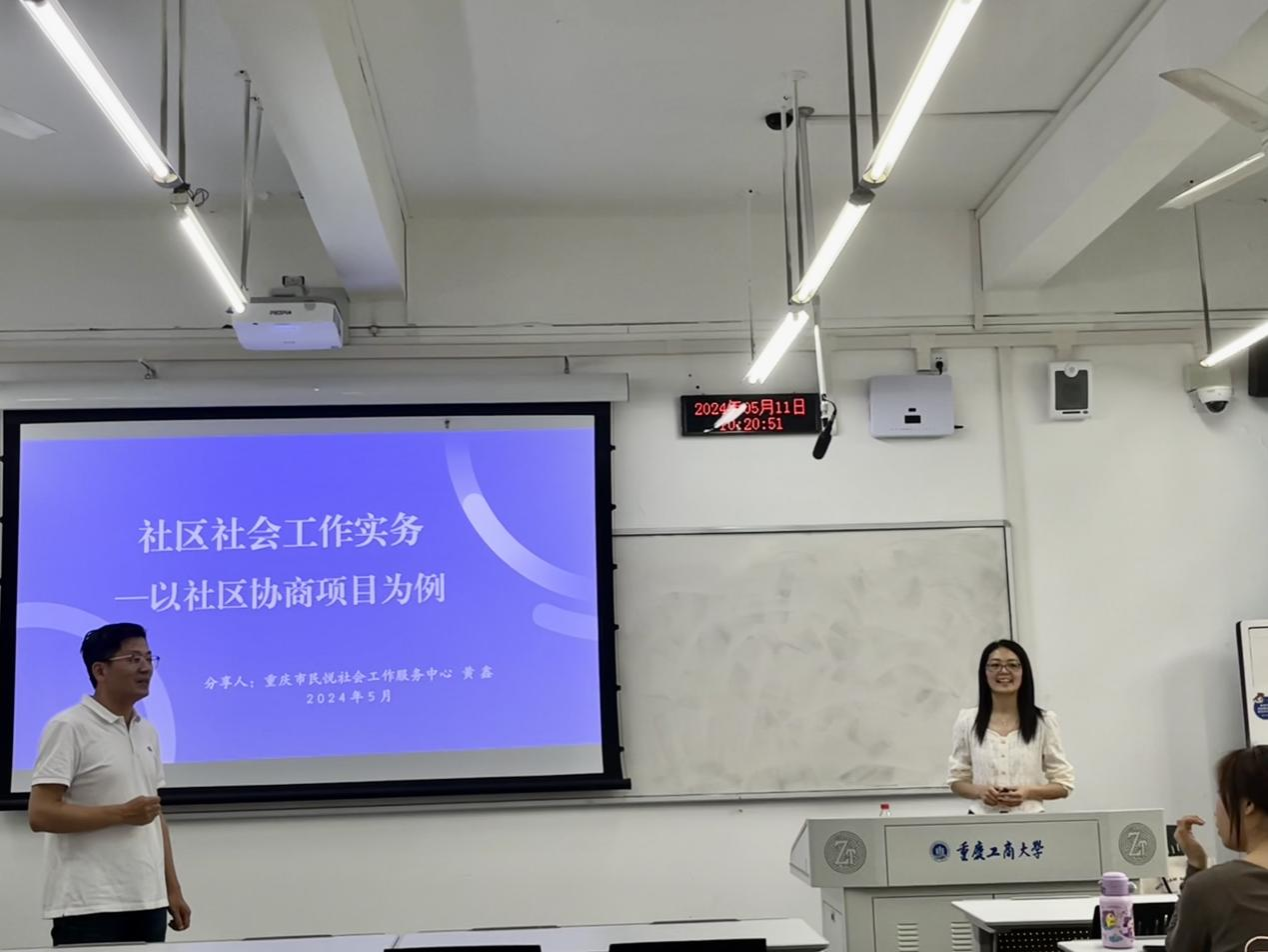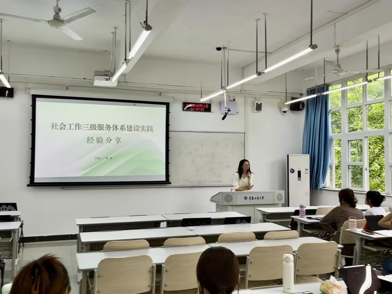 为了推动专业教育与行业需求的结合,理论教学与实践应用的有机融合,以及课堂学习与实际操作的良性互动,2024年5月11日,公司研究生课程《社区社会工作理论与实务》邀请重庆市民悦社会工作服务中心的社工一起开展以“社区社会工作实务”和“社会工作三级服务体系的经验分享”为主题的移动课堂。本次移动课堂由授课教师程鹏立主持,项目主管黄鑫主讲,公司2023级社会工作研究生参与。