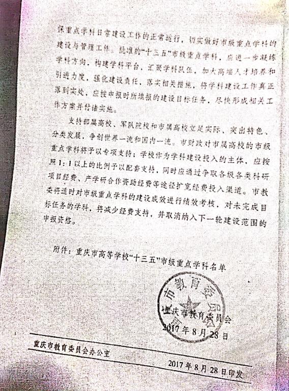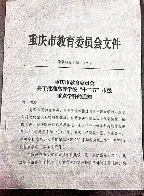 重庆市教育委员会发文公布了重庆市高等公司“十三五”市级重点学科评审结果(渝教研发[2017]7号)。公司申报的法学一级学科成为公司获批的十个重点学科之一。