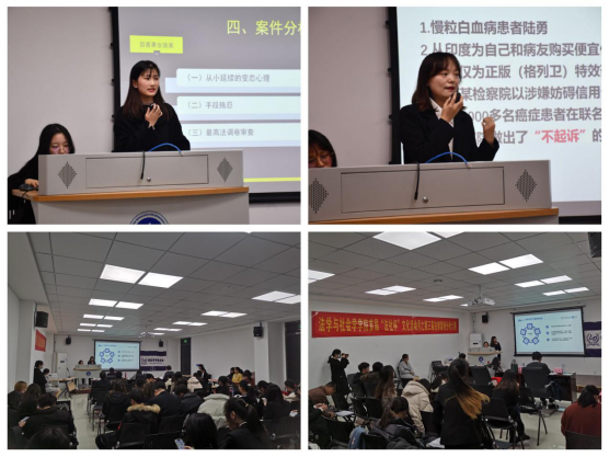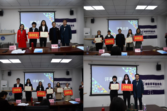 本次大赛采用案例讲解和现场答辩的方式进行,由三位评委老师根据参赛选手的语言表达、逻辑结构、法条法规运用、观点鲜明性等方面进行综合评分,角逐出本次大赛的优胜案例作品。最后,由2019级法学一班张彬鑫等同学组成的未来精英人士队以缜密的逻辑思维和超强的应变能力,成功征服了现场的评委老师和同学们,不负众望,荣获金奖;由杨欣等研究生队员组成的律政俏佳人队和2018级本科生李城林等同学组成的我就是试试队荣获银奖;陈俊男等同学组成的奶茶第一名队、汪雅玲等同学组成的基因重组队以及王利莎等同学组成的加油魔法人队分获铜奖。未来精英人士队同时获得优秀案例奖。在大赛结束时,评委老师就本次活动意义和同学们的精彩表现给予了高度肯定,并对未来同学们的专业学习提出了殷切期望。