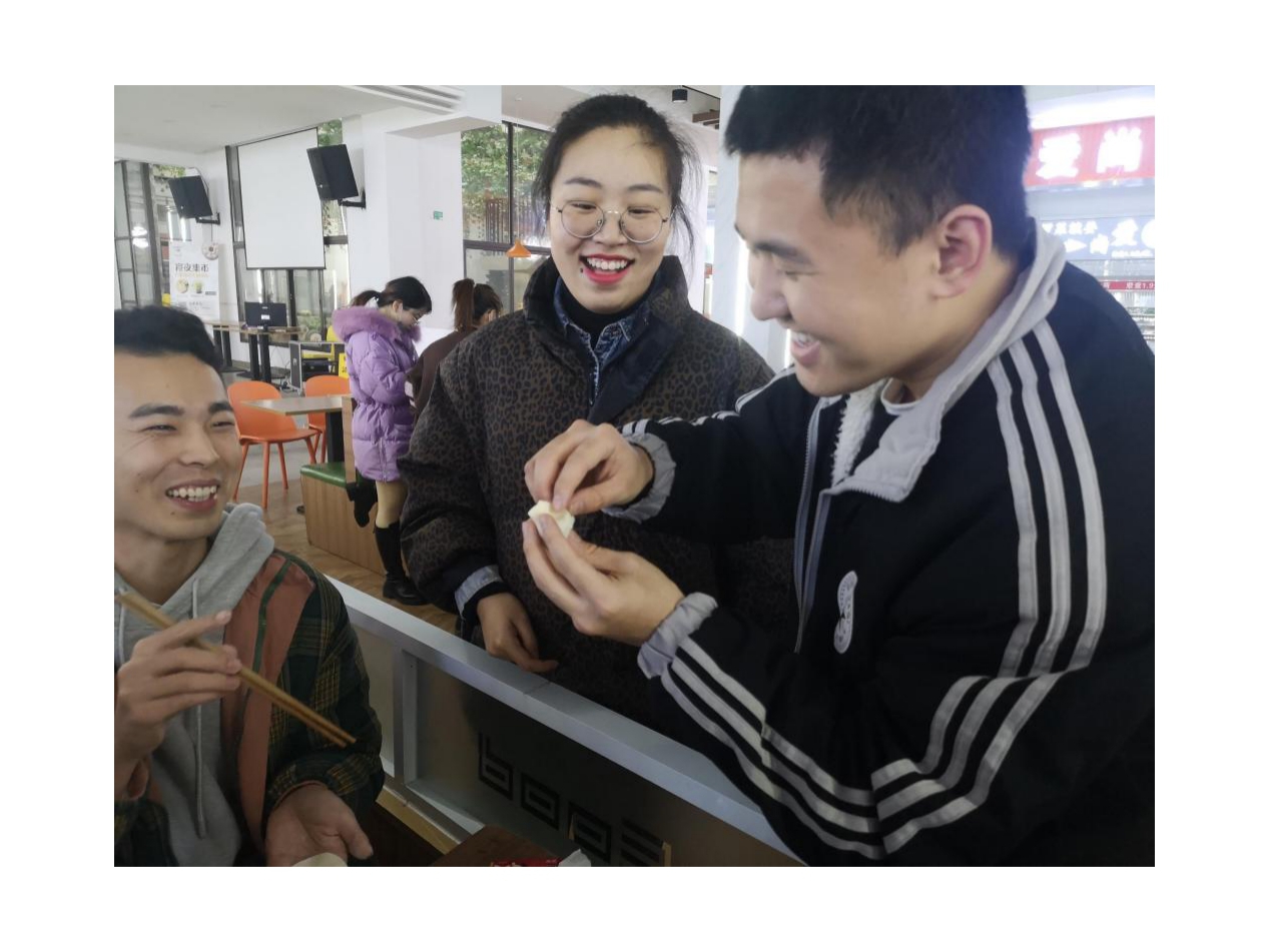 在欢声笑语中,一盘盘热气腾腾的饺子出锅了,员工们围坐在一起,一边聊着天,一边品尝着自己亲手包的饺子,气氛热烈,温暖备至。最好吃的是新手做的食物,最温暖的是集体。本次包饺子活动不仅锻炼了员工们实践动手的能力,增进了彼此之间的交流与友谊,更让同学们体会到了法社大家庭的温暖!让同学们从中体会到了劳动的快乐,激发大家勤于动手,勇于实践的热情。这次携手包饺子活动在欢笑声中结束。员工们也在活动中懂得了合作、分享、创造、收获、传承和感恩。包饺子活动在17时落下帷幕,同学们自觉地打扫场地后合影留念。