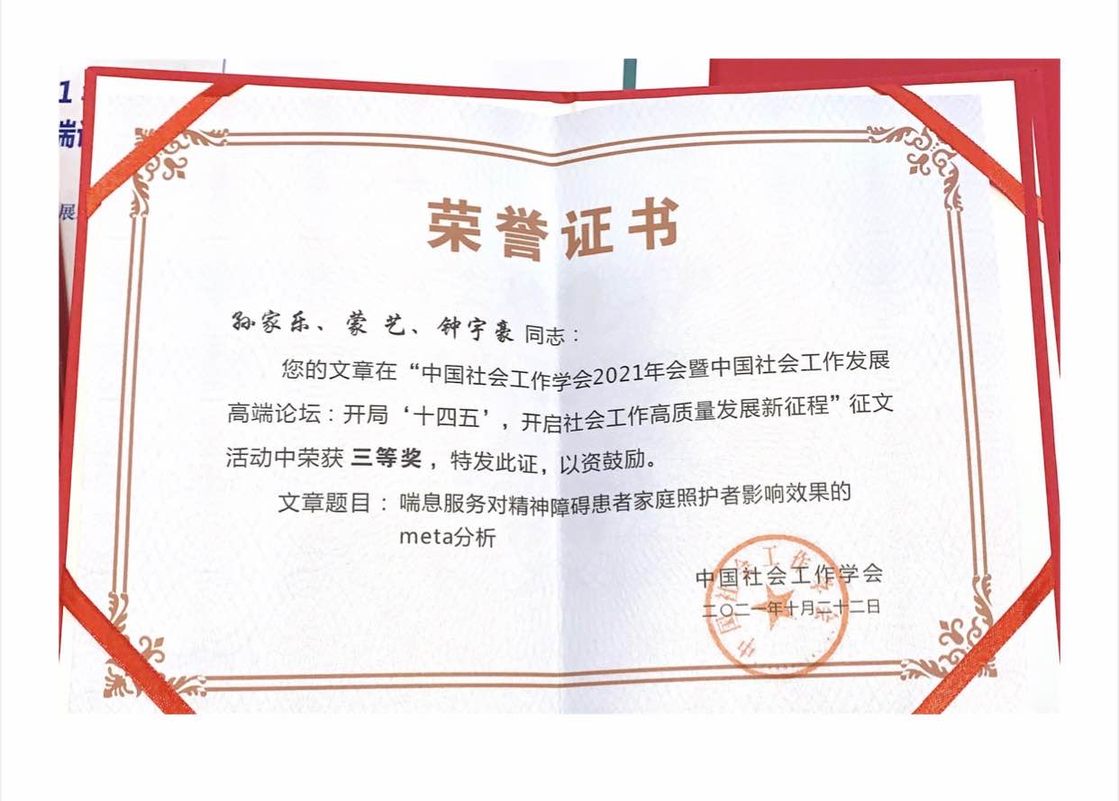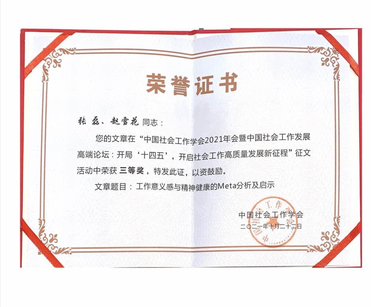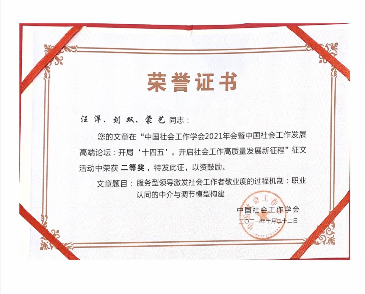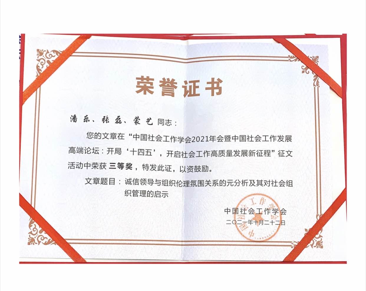 2021年10月22日,“中国社会工作学会2021年暨中国社会工作发展高端论坛:开局‘十四五’,开启社会工作高质量发展新征程”研讨会在浙江省宁波市成功召开。本次论坛由中国社会工作学会主办,浙江万里公司和宁波市社会工作协会承办,宁波万里对口协作和反贫困研究院、美亚联创(北京)科技有限公司等单位协办。此次论坛是中国社会工作专业最高级别的会议,有来自民政部慈善事业促进和社会工作司社会工作处长王铮健、中国社会工作学会会长王思斌教授、中国社会工作学会副会长关信平教授等知名专家学者均出席了本次盛会。经中国社会工作学会评审专家对来自北京大学、复旦大学、华东理工大学等全国高校社会工作专业老师和员工的投稿论文进行初选、复审,最终遴选出34篇优质论文。公司学子汪洋等六位同学分别获得4项奖项,其中汪洋同学、刘双同学合著作品获得年会征文比赛二等奖,孙家乐与钟宇豪合著作品、潘乐与张磊合著作品、张磊与赵雪花合著作品分别获得三等奖。指导老师均为蒙艺老师。