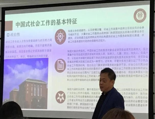 讲座伊始,庄勇教授首先对中国式社会工作的基本现状进行了简要介绍,并指出中国式社会工作的三大特征:专业性、制度性和政治性。其中,专业性是指中国的社会工作价值、理论、实务技巧要与国际接轨;制度性是指政府和社会为缓解个体、家庭、群体、社区和组织在与环境互动中出现的问题与矛盾,实现与环境之间良性互动而构建的专业化、职业化的社会服务制度。制度性是制度主体与制度对象之间的关系及制度内涵的异质性。