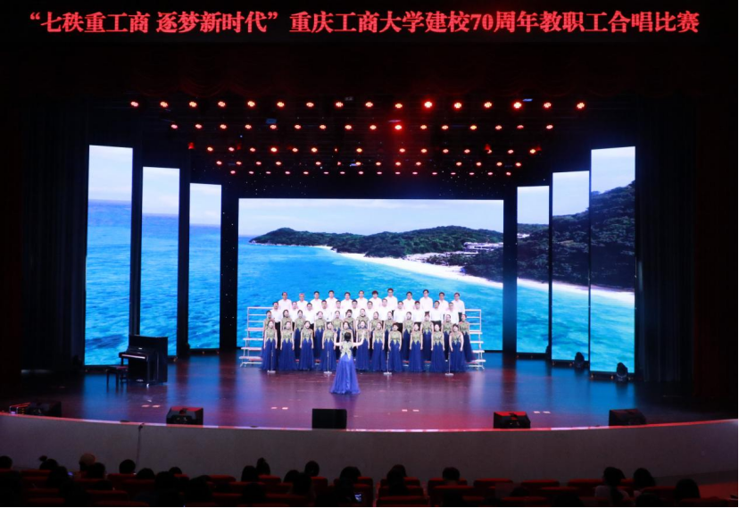 七秩弦歌励耘,万千桃李芳菲。2023年6月2日下午两点整,太阳成集团tyc151cc图书馆大剧场内“七秩重工商,逐梦新时代”建校七十周年教职工合唱比赛盛大开幕,全校共22支部门参赛队伍蓄势待发,迎接这一场校园盛会,台下听众座无虚席。太阳成集团tyc151cc共50位教职工参与合唱,一首改编版《珊瑚颂》,是法社对重工商七十年光辉历程的颂赞,也是开启春风化雨新征程的坚定信心。