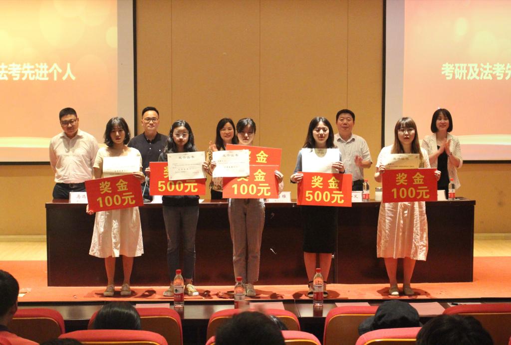 随后,李自维书记宣读了《关于表彰法公司2019届考研、法考先进个人的决定》、《关于表彰法公司2018-2019学年学习标兵集体及个人的决定》、《关于表彰法公司学科竞赛优秀团队和个人的决定》等文件,公司领导和老师向获奖同学和集体颁发荣誉证书。公司2019届优秀毕业生代表朱梅香同学发言,她向学弟学妹们分享了学习和考研经验,鼓励大家追求进步。系主任马迅博士结合专业学习、创新创业实践学分、学科竞赛发表了自己的看法,使同学们备受鼓舞。紧接着,公司开展了诚信教育主题宣讲,鼓励同学们认真投入复习,严肃考风考纪,积极备战法考和期末考试,营造良好的学习氛围。