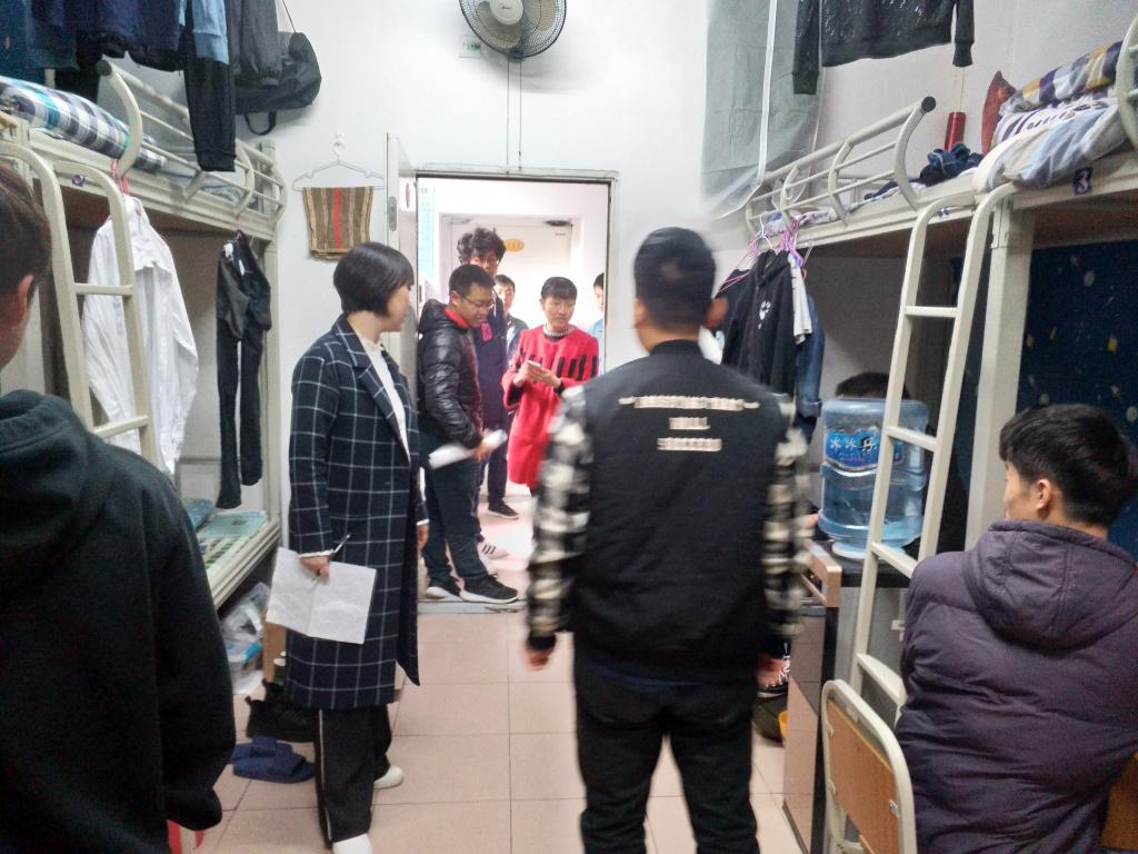 另外,院领导和老师对之前一次抽查中存在问题的寝室进行了回访。针对上次检查存在的问题,相应寝室进行了“大换血”式的整改,书架变得整齐,阳台堆积物进行了清理,厕所变得整洁,鞋子乱放的现象得到了有效治理。检查的老师们都纷纷进行了称赞,并且希望下次再回访时,也能保持这样的寝室环境。