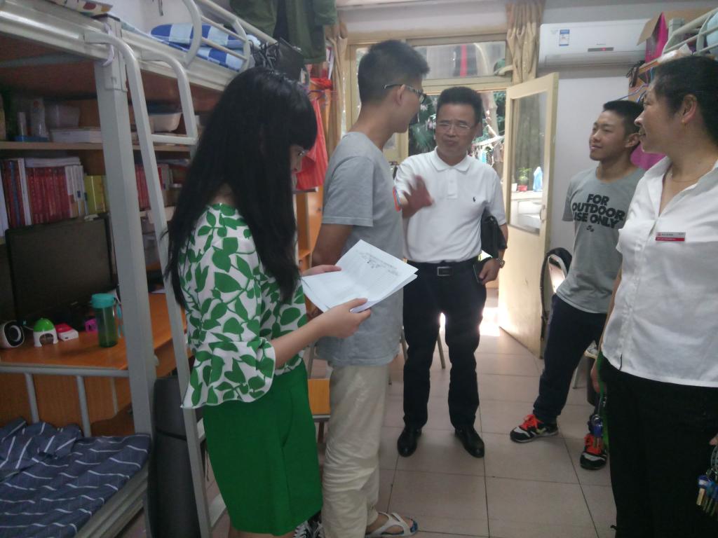 按照公司安全稳定、寝室不规范用电行为专项整治工作会议精神的要求,法公司学工系统组织开展了寝室环境卫生、安全用电专项整治检查活动。2017年7月11日,法公司党总支简福平副书记带领辅导员刘鑫、罗观、陈丹妮三位老师深入寝室展开专项检查。