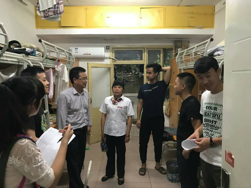 (法公司简书记与辅导员老师们深入员工寝室)