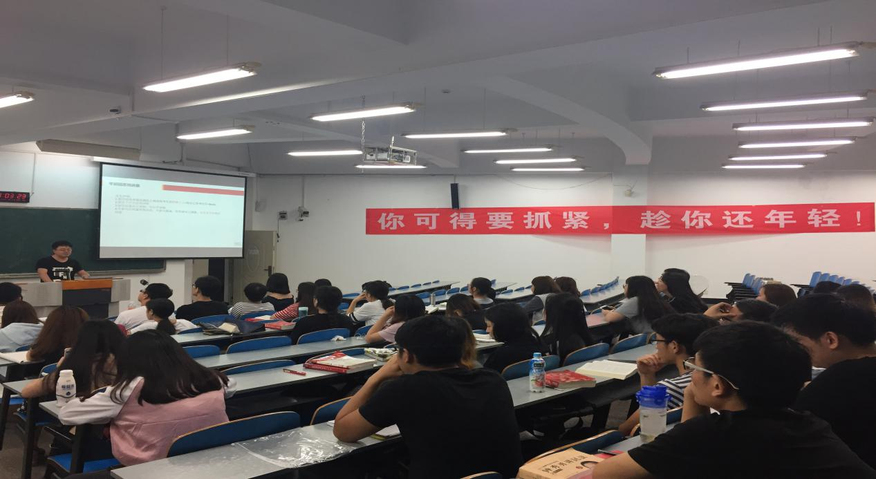 简书记首先对考研团的日常自习情况予以充分的肯定,随后对同学们的学习现状表示关心,了解了同学们所面临的困惑和难题,并鼓励同学们继续坚持,勤奋学习,克服困难。其次还简要地分析了今年公司考研的形势和动态,强调考研不仅要考高分,还要填好志愿,找对方向。简书记的谆谆教诲让在座考研团学子备受鼓励!接下来是13级宋树鹏同学带来的2017年公司上线落榜情况研究分析及自身学习经验交流。他指出,上线却又落榜的教训有“盲目制定过高目标”、“高估自身实力”、“精神懈怠,享乐思维作祟”、“只重视专业课或者公共课”、“只注重做题背书,不重视错题整理”、“哪个专业热门报哪个”、“闭门造车,以为自己很努力了”、“心浮气躁,易受干扰”、“吃不得苦,光想着玩”等,让同学们以此为警,备受启发;他认为,学习方法和技巧是成功考研的重要因素,建议同学们对知识进行总结和归纳,注意整理好错题集;他强调,考研科目分数构成也十分重要,建议专业课和公共课应该并重。并且还推荐比较实用的学习软件和网站,同学们受益良多。最后,简书记对此次经验交流会进行了总结,对宋树鹏精彩的分享交流表示感谢!鼓励同学们不忘初心,继续努力,争取今后考研成功!