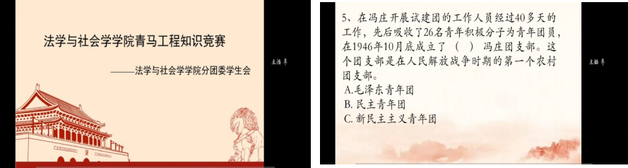3月28日21:00,太阳成集团tyc151cc分团委开展了青马工程培训班线上知识竞赛活动,活动旨在以党史和团史知识问答、现场解析讲述的形式,引导广大青年学习党史和团史、汇聚力量、传承精神,以更饱满的热情投入到日常的学习、工作和生活中。