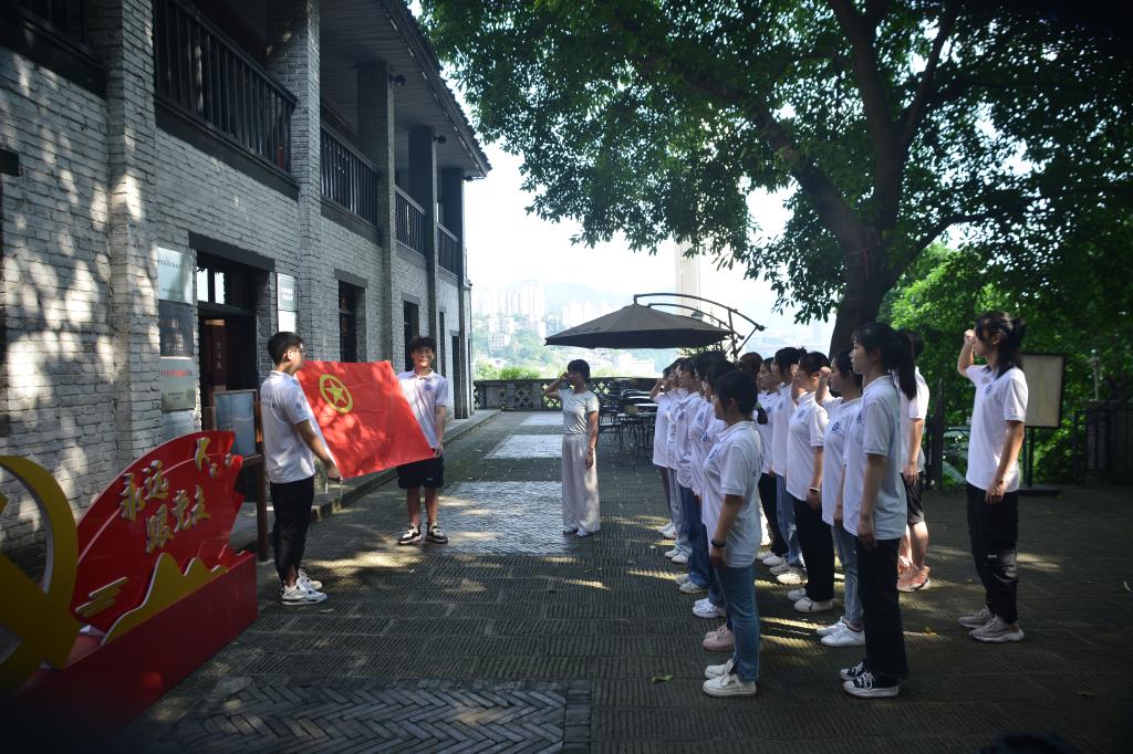 习近平总书记指出,重庆是一块英雄的土地,有着光荣的革命传统,要运用红色资源,教育引导广大党员、干部坚定理想信念,养成浩然正气。跟随着习总书记的指示,7月5日,理论宣讲团在团委书记的带领下来到位于重庆市南岸区南滨路的《挺进报》旧址,深入学习了《挺进报》诞生的背景、印刷发行方式、遭遇破坏的过程及革命先烈陈然的英雄事迹,深刻感受到在当时紧张局势和艰苦条件下革命先烈不屈不挠的“硬骨头”精神。《挺进报》诤言寄后人、狱中八条、陈然烈士的“自白书”等给予青年团员警醒,全体团员青年在陈然烈士被捕的地方面对鲜红的团旗高举右拳,字字铿锵,再一次作出庄严承诺。
