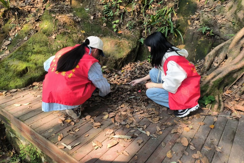 志愿者们顺着栈道逐级而上,将道路两旁的垃圾都清扫干净。清扫活动不仅使志愿者们的身体素质得到了锻炼,还让志愿者们深深地感受到了山林清洁的不易,进一步增强了老员工的劳动实践意识。