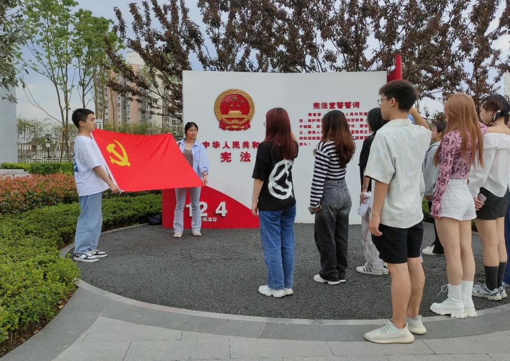 随后员工党员、会长彭文星的带领下,成员们在党旗下开展了庄严肃穆的宣誓仪式。坚定洪亮的铮铮誓词回荡在园内,同学们牢记新时代青年人的历史使命,永葆新时代青年人的本色,将纪律规矩意识、廉洁自律意识熔铸于心。