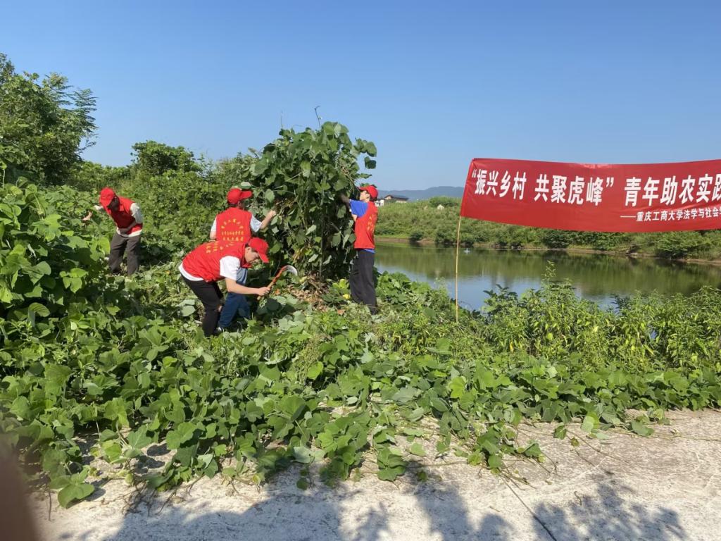 为进一步深入调研铜梁区虎峰镇回龙村特色农业发展的具体情况,助力回龙村产业振兴,老员工志愿者将目光聚焦回龙村的李子园,回龙村村支书冉顺江的带领下访谈周边村民开展产业调研。回龙村以盛产美味李子而闻名李子园的维护面临着一些困难,其中之一就是杂草的生长严重威胁着李子的产量和品质。为了帮助李子园解决这一难题,实践团成员自发组织起来,带上锄头、镰刀等工具,前往李子园进行全面的除草工作并实地拍摄李子园宣传视频为李子销售和包装贡献智慧和力量