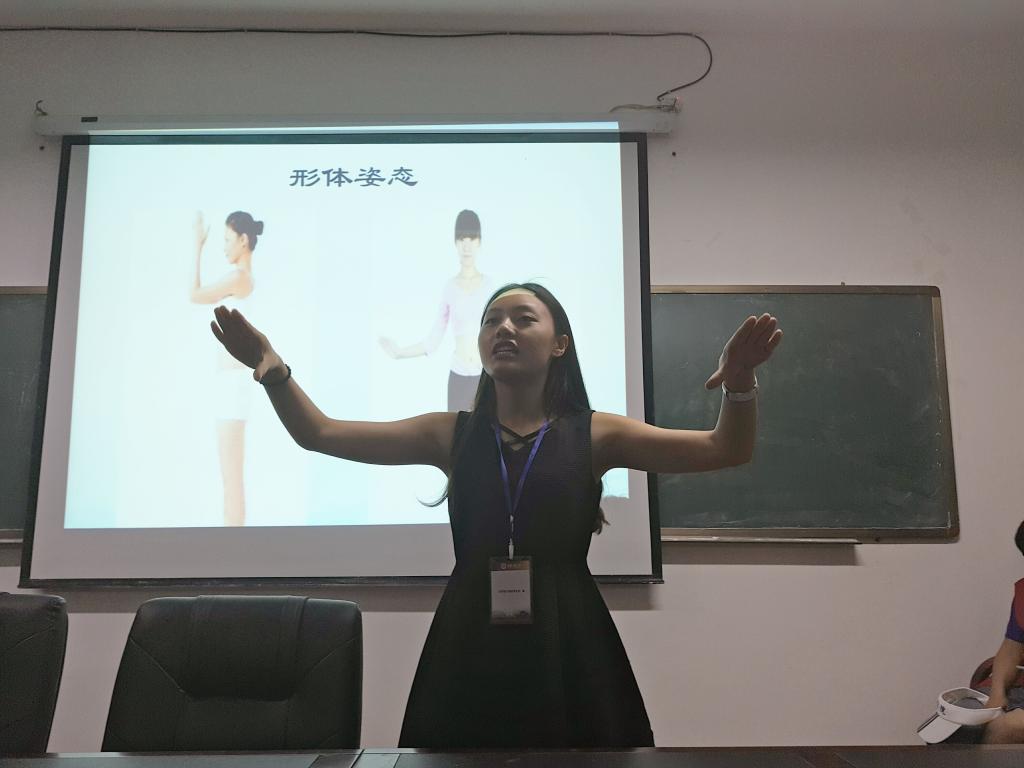 在同学们热情的掌声中,市民公司第一堂课拉开了序幕。负责本次舞蹈课程的实践团成员精心准备了开场舞,一段优美的伦巴将现场的气氛调动起来。随后,主讲成员以PPT的方式为同学们介绍了拉丁舞中具有代表性的舞蹈——伦巴的一些理论知识,以加深同学们对拉丁舞的了解。理论讲解后,主讲成员从形体、手式、跨度、步伐四个方面现场教授了同学们学习伦巴的基本要领。在座的同学们积极与实践团成员互动,认真地练习每一个动作,在实践中感受伦巴的魅力。