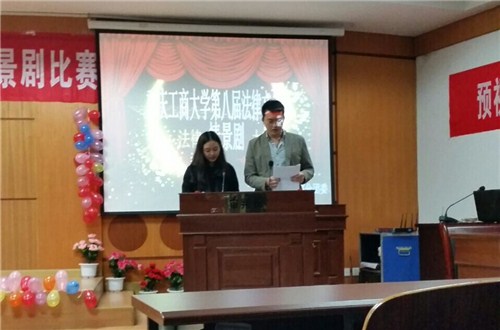 副经理刘勇发表讲话并宣布“决赛正式开始”!首先,12级法学4班为大家带来了“绑架光头强案”,通过诙谐的表演方式提醒大家:遇到绑架要冷静对待,要懂得使用法律武器保护自己!接下来,14级电商1班带来的“中奖案”,也警示:不要相信天上会掉馅饼,要靠自己的双手去创造财富!前两支队伍表演结束,接着进入了好玩的游戏环节,“抢板凳胜利者”史泽禾同学一段精彩的“小苹果”演唱,使得台下一片惊呼!短暂的休息准备后,比赛继续,12级法学3班的同学们带来的是“招聘案”,逼真的演技似乎使大家融入到了剧中,情绪也随着表演者一起波动。然后由14级民商2班为大家带来的“未成年人杀人案”,幽默风趣的表演形式引得台下一阵欢呼,掌声不断最!最后出场的14级民商1班的同学们通过精彩的模拟“庭审”表演,也让大家感受到了法庭的庄严感。