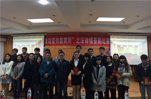 表演结束,经过老师和大众评审的紧张讨论,主持人宣布了此次“法律情景剧”决赛的排名情况:第一名14级民商1班,第二名14级民商2班,第三名12级法2班!出席嘉宾对此次比赛做了总结并与获奖班级进行了合影留念!在大家的掌声和欢笑声中,此次“法律情景剧”大赛顺利落下帷幕!