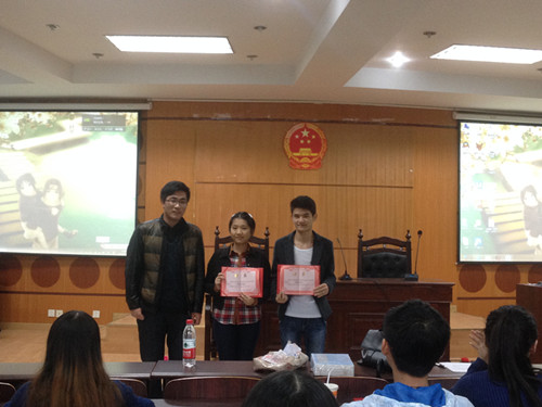 会议开始,首先由各个分管主席为各部门部长颁发部长聘书并留影纪念。紧接着,主席张天宇对11月的法公司“法律文化交流月”的相关事宜作出了详细部署,提出联合法公司法律咨询中心即“法律诊所”进入社区为广大人民宣传法律知识的建议,积极将“普法到民”落到实处。其次,体艺部部长郑银对趣味运动会的事情进行了讲解,同时也鼓励同学们踊跃参加,努力拼搏,为公司争光添彩。随后,体艺部副部长吕松薇介绍了于