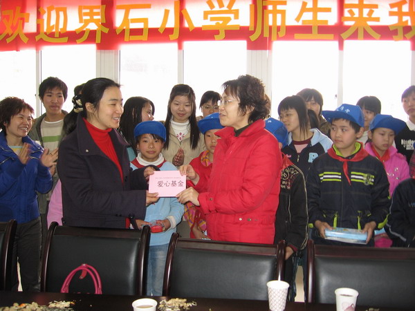 最后,公司领导向界石小学赠送了“爱心基金”,并赠送了文具。