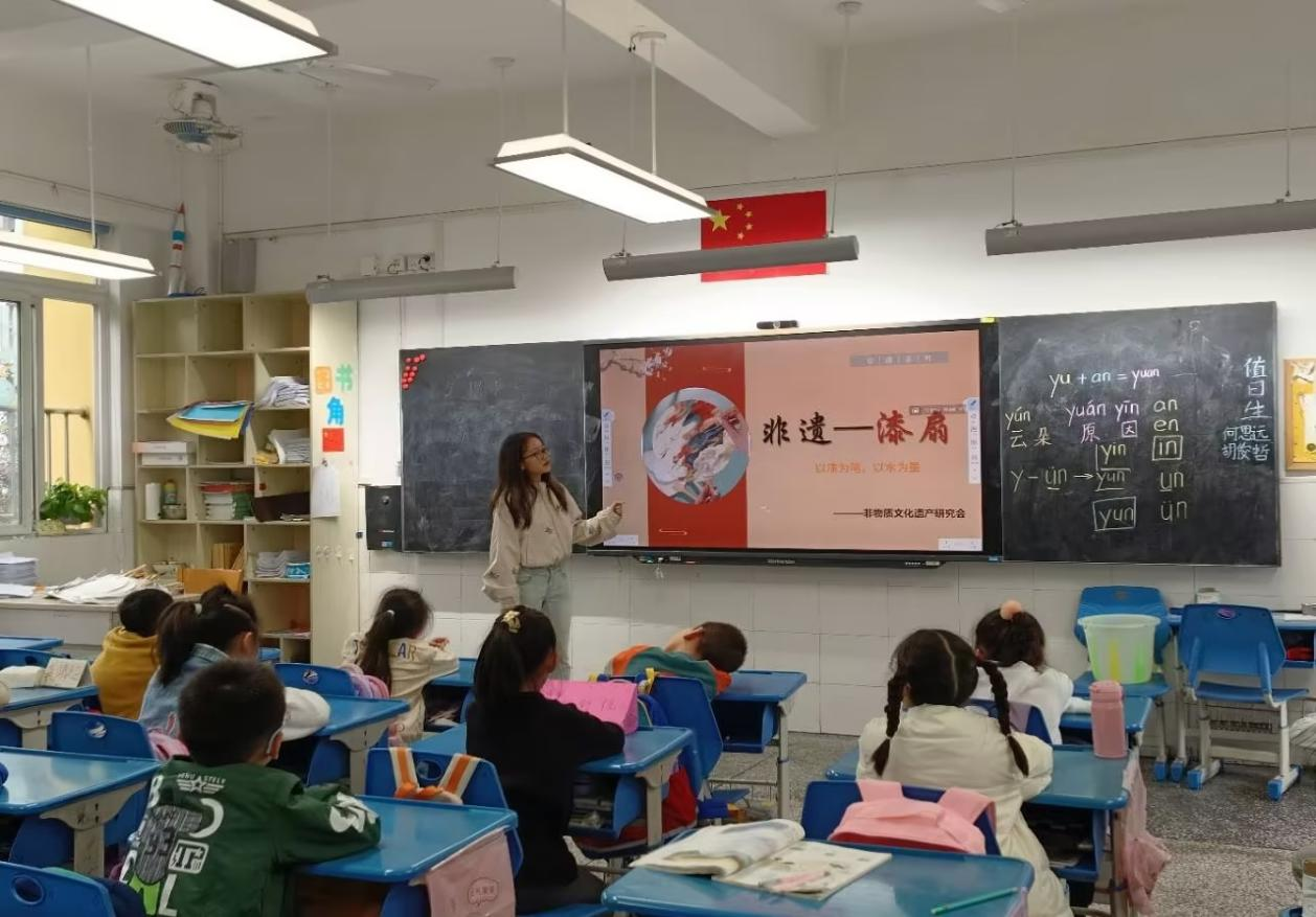此次活动由10位非物质文化遗产研究会的成员分别对应10个不同的班级进行授课,授课对象为江南小学一年级员工。各位成员首先向员工们介绍了非物质文化遗产的概念内涵以及保护非物质文化遗产的重要性,接着向员工们介绍了大漆的来源、大漆的制作、漆扇的独特之处,每一个环节都透露出古时的智慧,引发了员工们对非遗传统文化的浓厚兴趣。
