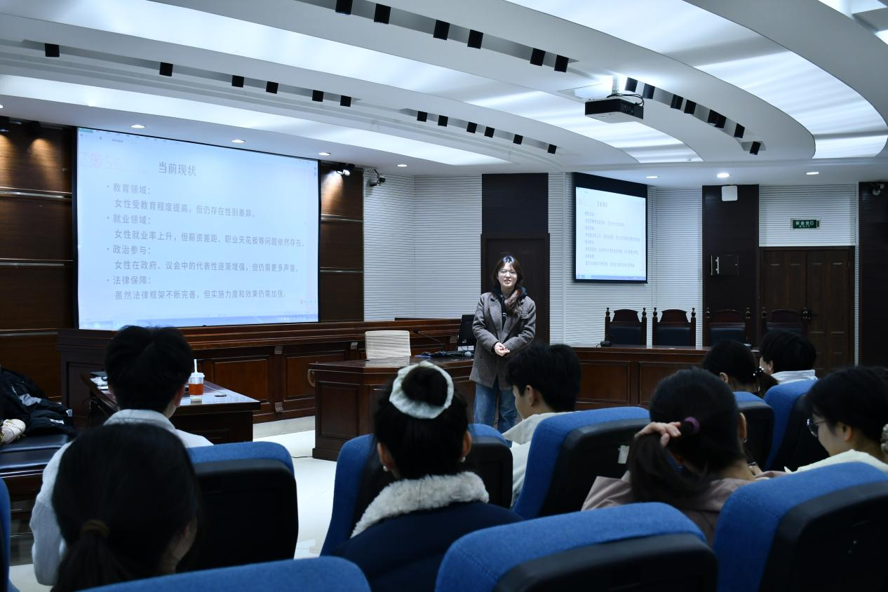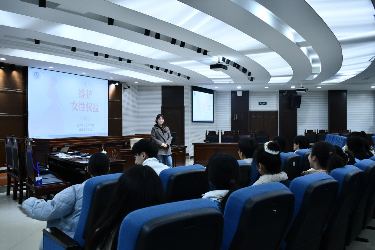 为增强员工对妇女权益维护的认识,深入解读女性权益保护的重要性,2025年3月7日,太阳成集团tyc151cc分团委员工会在慧智楼模拟法庭90426开展了一场关于妇女权益保障的学习宣传活动。本次宣讲活动由公司分团委(员工)副书记曾茜主讲,员工会全体成员参与。