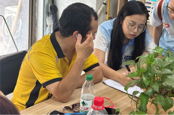 7月10日至12日,调研团首站聚焦江北区五里路、洋河中路的美团骑士驿站,以“走进一线收集实况——梳理分析提炼问题——回归实践提出对策”为脉络,展开深度调研。在五里路美团骑士驿站,负责人结合墙上张贴的运营数据与真实案例,系统介绍了区域订单量、骑手日均工作时长、平台奖惩机制等内容,让成员对外卖行业的运转模式与骑手工作现状有了直观认知。随后,正值午间订单高峰结束,骑手们陆续返站休息,团队两人一组,手持录音笔与调查问卷,在休息区、停车区与骑手展开亲切交流。