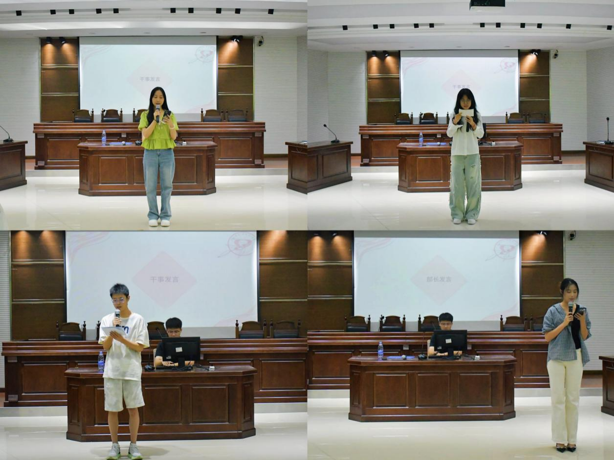 回望公益路,新人立初心。主持人向全体成员详细介绍了服务队的成立背景、发展目的以及活动成绩,使新成员对服务队建立了整体认知。其次,会长、各部部长及新干事代表依次上台,分别从不同角度分享了各自的观点与展望。随后,部长进行了专题培训与志愿活动经验分享,以帮助新成员快速熟悉工作。最后,全体成员共同宣誓,并合影留念。