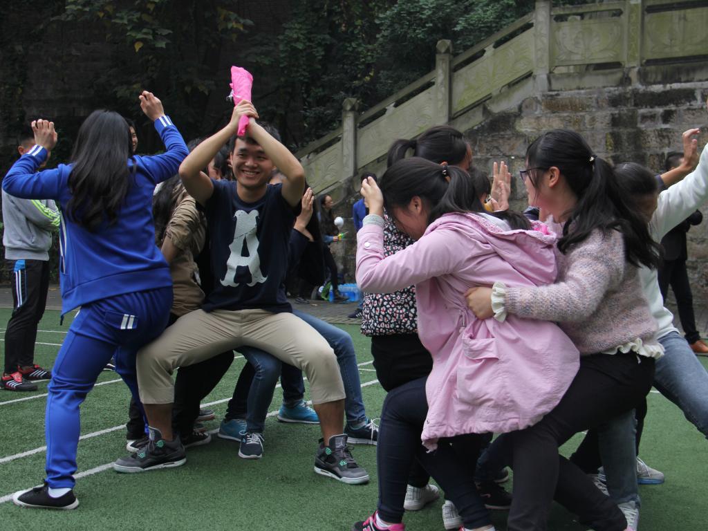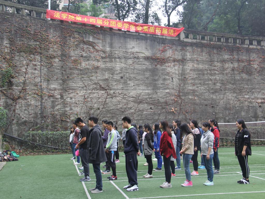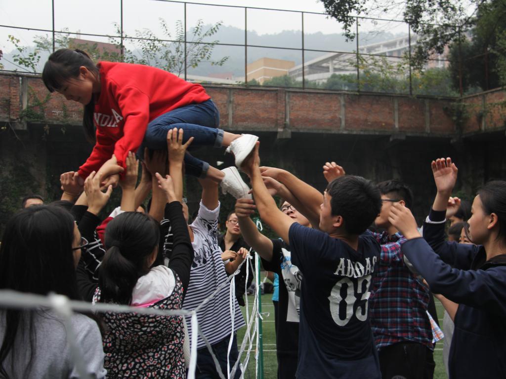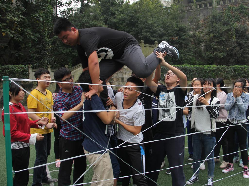 首先干事们被分为六个六人小组,各小组经过五分钟的讨论,决定了各组的组长,组名,组歌,口号以及组旗,并依次上台进行展示。紧接着各小组之间展开了“毅力人椅”的竞赛。本轮竞赛的获胜小组获得了下一个项目“极速前进”的优先出发权,其余小组按照上一轮的战绩依次出发参与到“极速前进”的项目中。经过在6个赛区的角逐,最终第二组获得了“极速前进”项目的冠军,并被授予“优秀团队奖”。随后进行的是集体项目“穿越电网”,在本次项目里,干事们面对极具挑战性的比赛要求和严苛的比赛规则,迸发了前所未有的凝聚力和团结协作的意识。经过大家的集思广益和顽强拼搏,最终完成了比赛。比赛项目结束后,各部门部长与干事们以身体为笔画偏旁,拼出了“法”“十四”等大字,寓意第十四届法公司员工会将通过部长和干事们的通力合作而蒸蒸日上,走向未来。素拓活动结束后,在覃副书记的组织下,大家席地而坐,各抒己见,发表了各自的素拓心得,其中不乏精彩之处,赢得掌声如潮。最终,本次素拓活动以一张第十四届法公司分团委员工会的全家福划上了一个完美的句号。