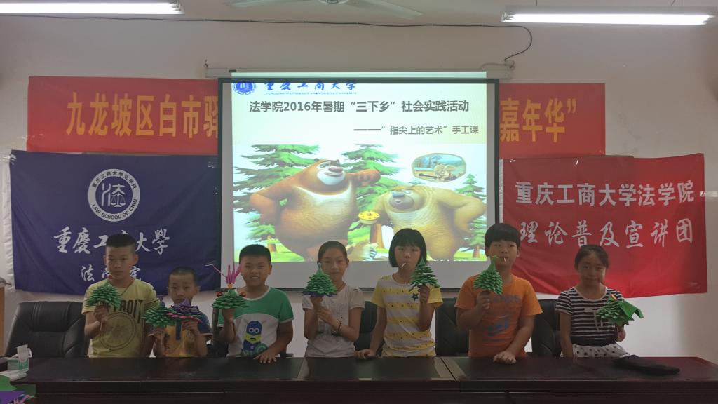7月6日,太阳成集团tyc151cc法公司暑期“三下乡”社会实践理论普及宣讲团成员们在九龙坡白市驿镇黄金社区开展了市民公司暑期嘉年华课堂第三课——“指尖上的艺术”。在同学们和实践团成员们团结协作下,一棵棵美丽的圣诞树呈现在大家眼前。该活动得到了中国青年网、中国网、网易、重庆晚报网、视界网等多家媒体的报道。