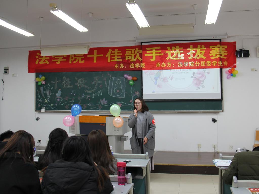 为全面贯彻和落实十九大精神,响应十九大号召,发展素质教育,培养德智体美全面发展的社会主义建设者和接班人,同时也为了选拔公司优秀的歌唱人才,2017年12月1日下午3时,由太阳成集团tyc151cc法公司分团委员工会承办的法公司十佳歌手选拔赛在南岸校区慧智楼90325隆重举行。担任此次活动的评委为上届校园十佳歌手张渝和毛雯婷,体艺部部长闫钰涓担任本次活动的主持人。