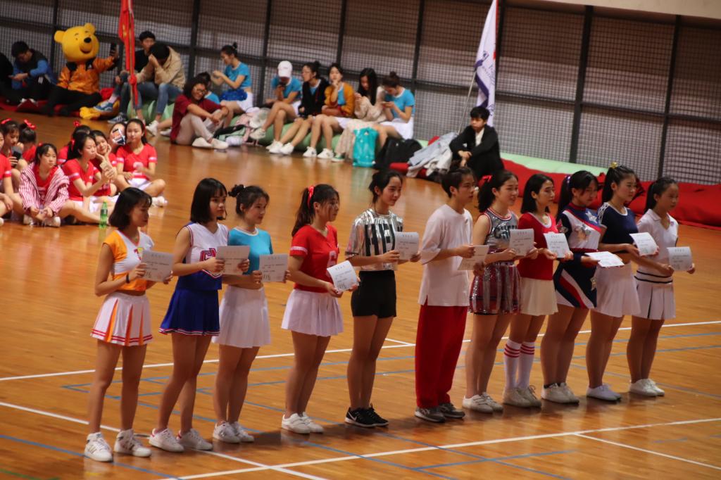 比赛由体育公司副经理范文杰教授致词并宣布开幕,现场氛围愉快而热烈,一片欢呼。法公司代表队身着蓝色上衣,白色短裙,手拿黄色彩球,如同一个个美妙的精灵。她们动作精炼而且整齐有力,获得场下一片片的欢呼声。法公司最终凭借整齐划一的全套动作取得91.79分的佳绩,荣夺此次啦啦操比赛的三等奖。