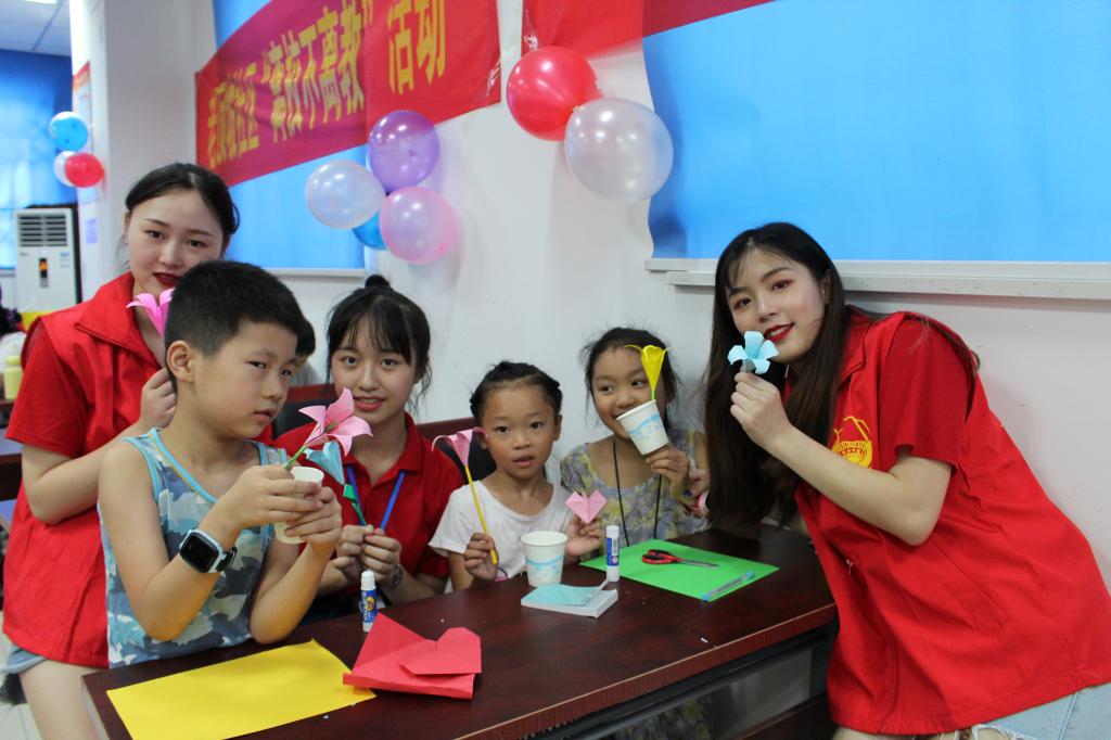 实践团成员手把手教授小朋友