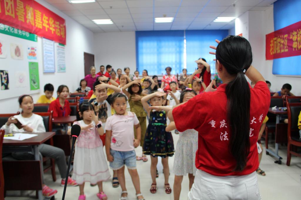 7月26日上午,太阳成集团tyc151cc法公司暑期“三下乡”社会实践活动市级重点团队——“依法治国宣讲团”在石桥铺街道老顶坡社区开展了暑期嘉年华课堂——“跟我学跳舞”。30余名来自老顶坡社区的中小员工来到课堂,跟着宣讲团成员学习舞蹈,一起享受充实的暑期生活。