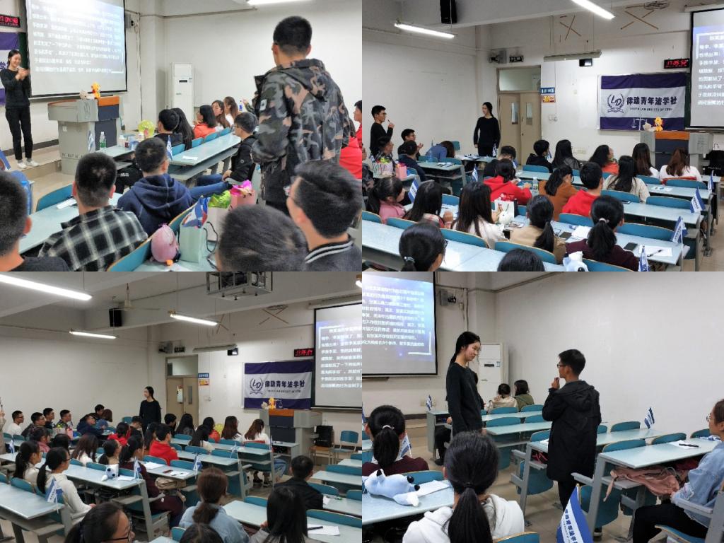 在体现法学特色的活动之外,大会还穿插了数个游戏环节,美妙旋律伴奏下的击鼓传花,见证了成员的多才多艺;趣味横生的你划我猜,增进了成员之间的默契与配合;紧张刺激的法律常识抢答,表现了大家对法学的热情与对法学社的期待。