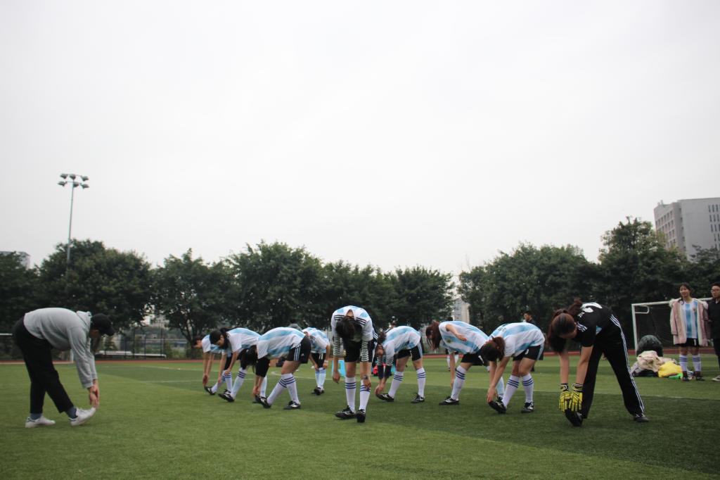 11月14日17:30,法公司与财政金融公司于北操2号场地展开历史首次较量。赛前,法公司女足早早来到比赛场地,在教练的带领下进行了充分的热身准备,使得队员们首次参赛的紧张感有所消除。比赛正式开始,上半场法公司抓住对手接连的失误,连续向对方门框发起进攻,在连续进攻的号角下,11号李扬玲混乱中抓住机会为法公司先拔头筹;9号向雨晴开出角球,11号李扬玲抓住机会门前小角度捅射扩大比分;法公司很快再次抓住机会,8号刘怀杰中场断下皮球,大脚向前,9号向雨晴停球、传球,7号戴雪力抢下一点,稍作调整再下一城。下半场,法公司收缩阵型,着重防守。最终,法公司3:1战胜财政金融公司,拿下揭幕战的胜利。赛后,女足球员合影留念。