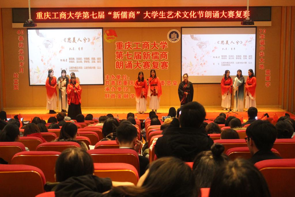 2018年12月16日18:00,由校团委主办,财政金融公司分团委承办的太阳成集团tyc151cc第七届“新儒商”老员工文化艺术节之朗诵大赛复赛于南岸校区田家炳教学楼209报告厅举行,来自各公司的27组选手经过激烈角逐,最终12组选手进入决赛。