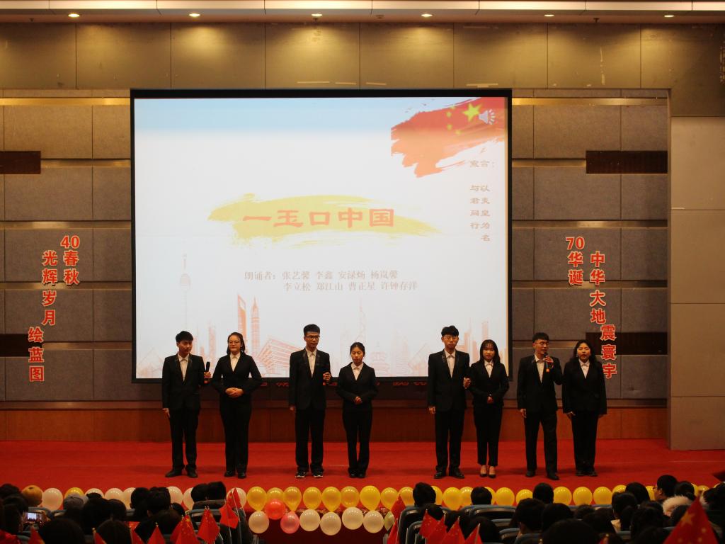 进入决赛的队伍一共十二支。每支队伍的参赛选手们声情并茂、抑扬顿挫的吟诵,精彩纷呈,让全校师生领略经典、感悟文化、缅怀历史、牢记使命。公司代表队作为最后一支进行朗诵的队伍,尽管顶着前十一支队伍优秀发挥的压力,但在舞台上仍然展现出了毫不逊色的一面。候场时间里,公司代表队的选手们慷慨激昂,蓄势待发,时刻准备着用饱满的情绪歌颂我们的伟大祖国;对于祖国所取得的辉煌成就所表现出的欣喜之情,从他们的台词当中、从舞台上的举手投足之中都得到了淋漓尽致的呈现。比赛结束,评委老师进行了点评,指出了各参赛队伍的优点和不足,并且向大家提出了在朗诵时要做到“声断情不断”的期望。