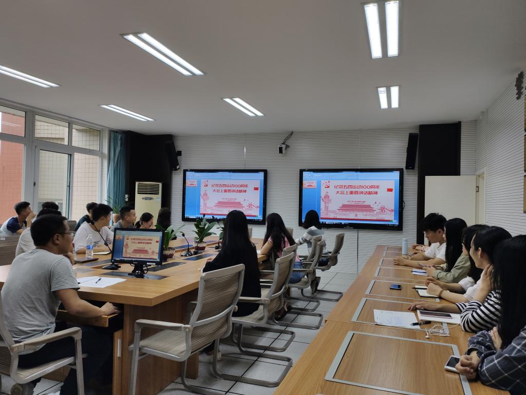 5月16日,法公司分团委组织公司各员工组织的青年代表于慧智楼90429会议室学习了习近平总书记在纪念五四运动100周年大会上的重要讲话,法公司分团委书记罗观领学了讲话精神。
