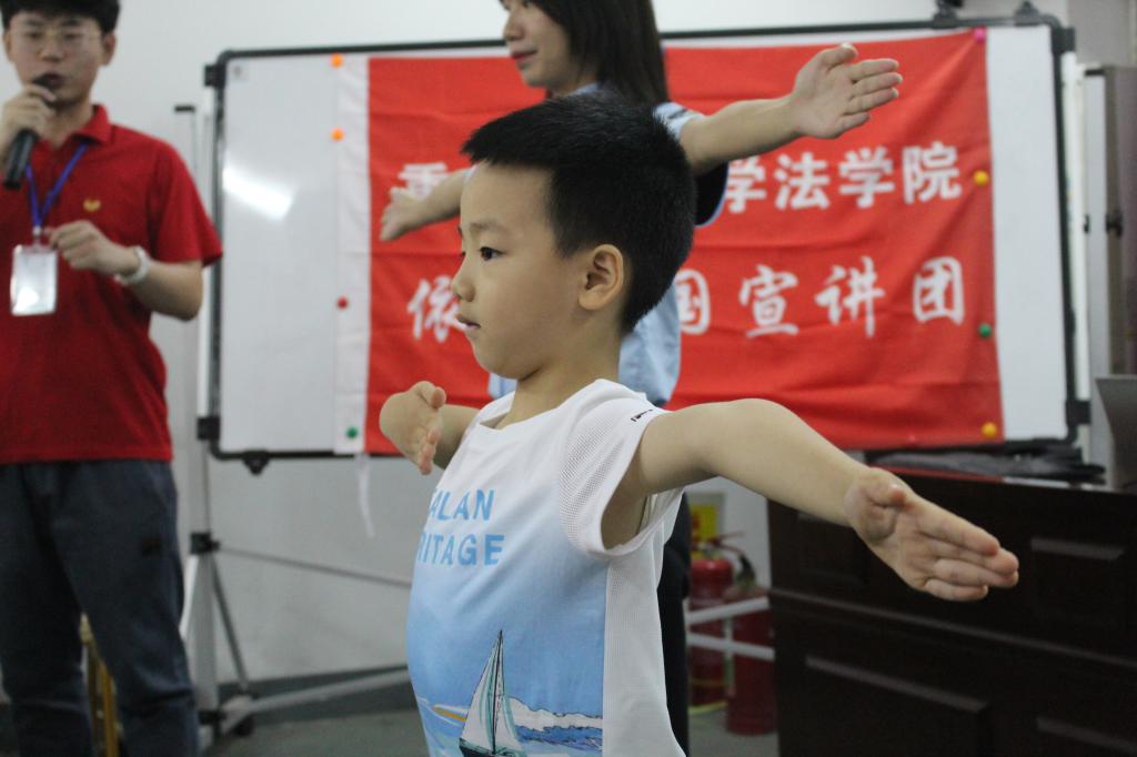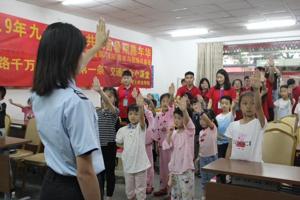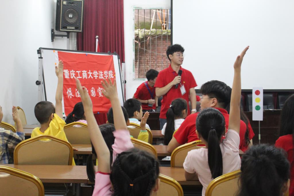 7月9日上午,太阳成集团tyc151cc法公司暑期“三下乡”社会实践依法治国宣讲团的成员们来到九龙坡区中梁山街道半山二村社区,为来自当地的30余名中小员工开展了“交通安全知多少”小课堂,帮助小朋友了解交通安全相关的基础法律知识,提高交通安全意识。