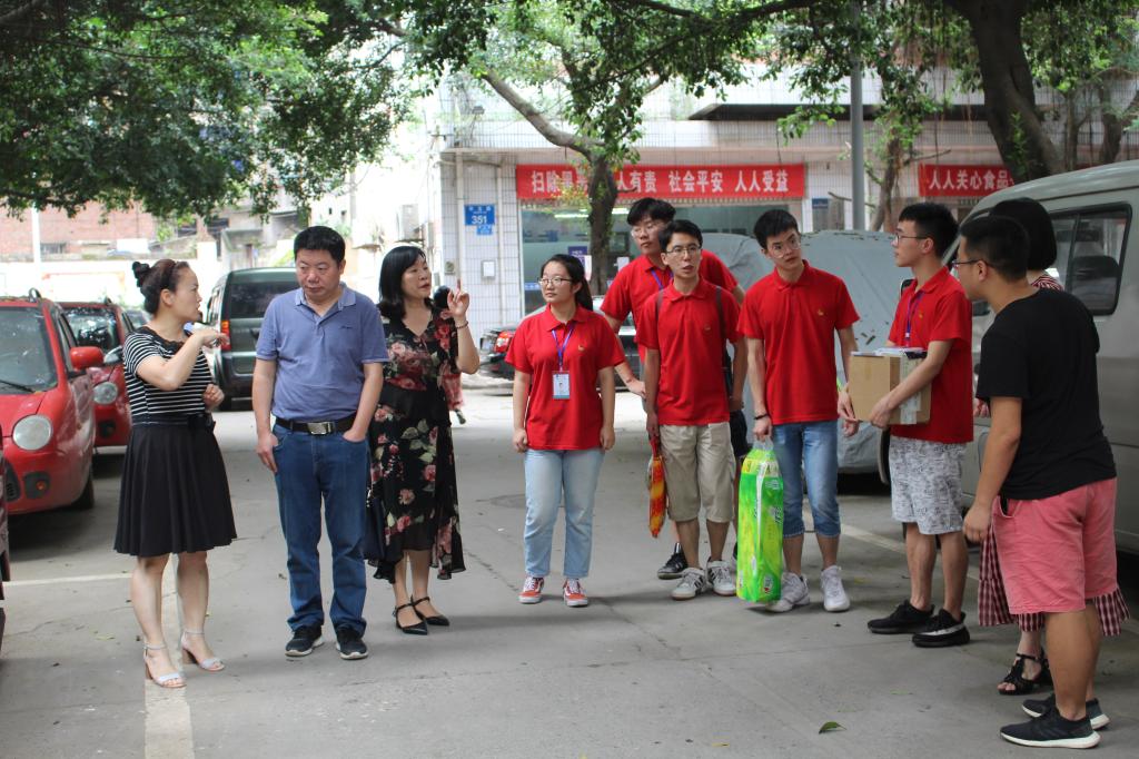 当日上午,法公司党总支书记李自维教授、经理杨和义教授、党总支副书记林璐老师来到中梁山半山二村社区活动中心看望宣讲团的成员们。课程结束后,他们同社区服务工作者与宣讲团部分志愿者前往慰问留守儿童与空巢老人,为其送上诚挚的祝福与关爱。