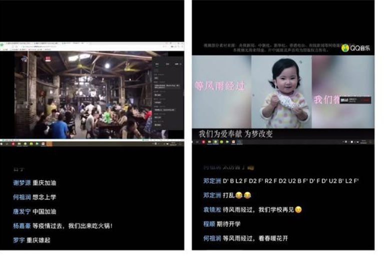 活动以全体团员起立齐唱团歌拉开序幕,李自维书记通过视频为大家加油鼓劲,鼓励同学们肩负起青年团员的使命与责任,不忘初心、牢记使命,服从安排,积极应对,主动发挥共青团员的先锋模范作用,协助公司、公司做好疫情防控工作。一段重庆防疫宣传片为大家带来了别样的感动,团员们纷纷在评论区留言,为重庆加油,为武汉加油,为中国加油。