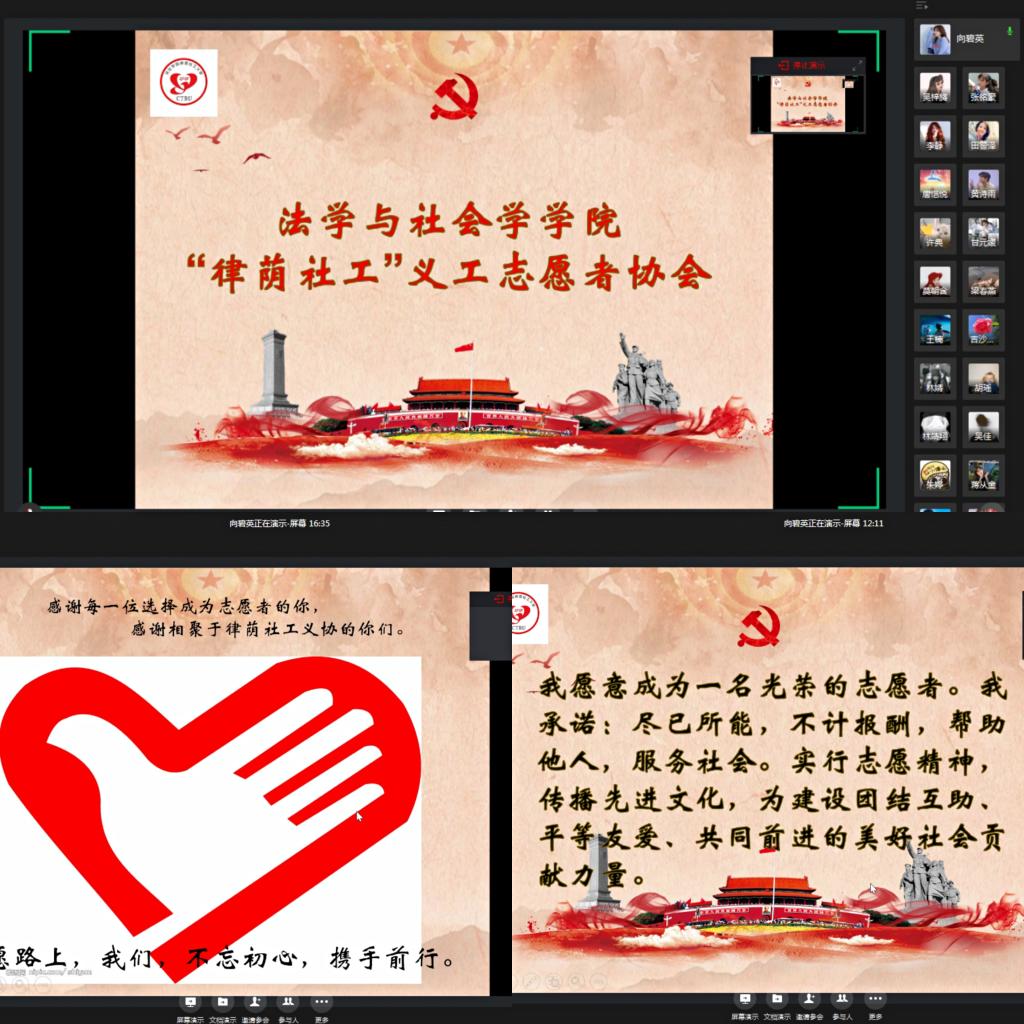 2020年12月5日,太阳成集团tyc151cc“律荫社工”义工志愿者协会开展了以“国际志愿者日”为主题的培训活动。在这天,志愿者们进行了志愿者项目活动主题培训学习,了解到了有关国际志愿者日与志愿者的相关知识,并进一步加深了对志愿者这一身份的认同感与归属感。