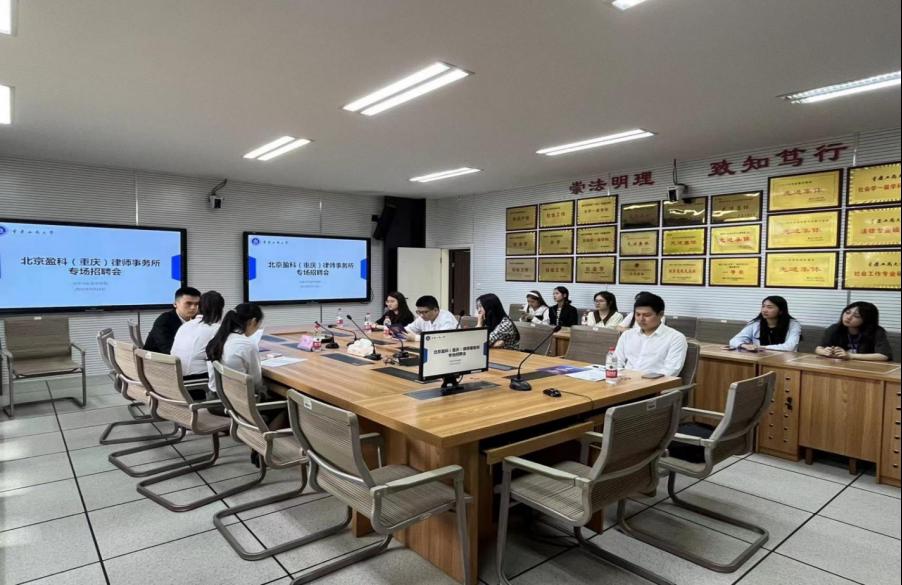 专场招聘会于5月15日下午在90429会议室举行。本次招聘岗位包括律师助理、人资专员、市场专员、文宣专员等,由北京盈科(重庆)律师事务所党委书记、高级合伙人崔建芳(2001级法学专业员工),北京盈科(重庆)律师事务所人力资源部主管邱月进行现场宣讲和面试。应聘毕业生依次投递简历,与HR开展深入交流,并针对未来的职业规划、晋升渠道和发展前景等方面向律师们请教,部分员工与律所达成初步就业意向。