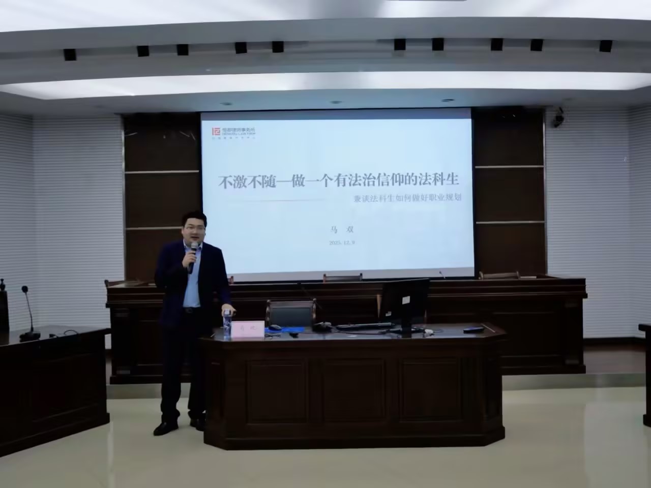 马双结合自身跨界进入法律领域的经历,分享了从“迷茫”到“坚定”的职业探索与成长之路。他通过精彩的案例剖析,阐释了法律人应当理性面对舆论、坚守程序正义与专业底线。随后,马双还梳理了法科生的职业方向,并结合2025年行业数据,分析不同职业准入门槛、核心能力要求与发展前景,为同学们提供了清晰的职业规划参考。