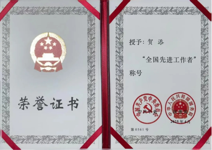 公司2007级社会工作专业员工,重庆市婚姻收养登记管理中心(重庆市未成年人保护中心)科长(科级),高级社会工作师、高级工贺添荣获“全国先进工作者”荣誉称号。贺添表示,荣誉是激励,更是责任,将以更高标准要求自己,立足婚姻管理服务工作,创新服务模式,深化服务内涵,用心用情为群众提供有温度、有深度、有高度的婚姻家庭辅导,以专业服务护航万家幸福,以家庭和谐助力社会稳定。初心如磐践使命,奋楫笃行启新程!