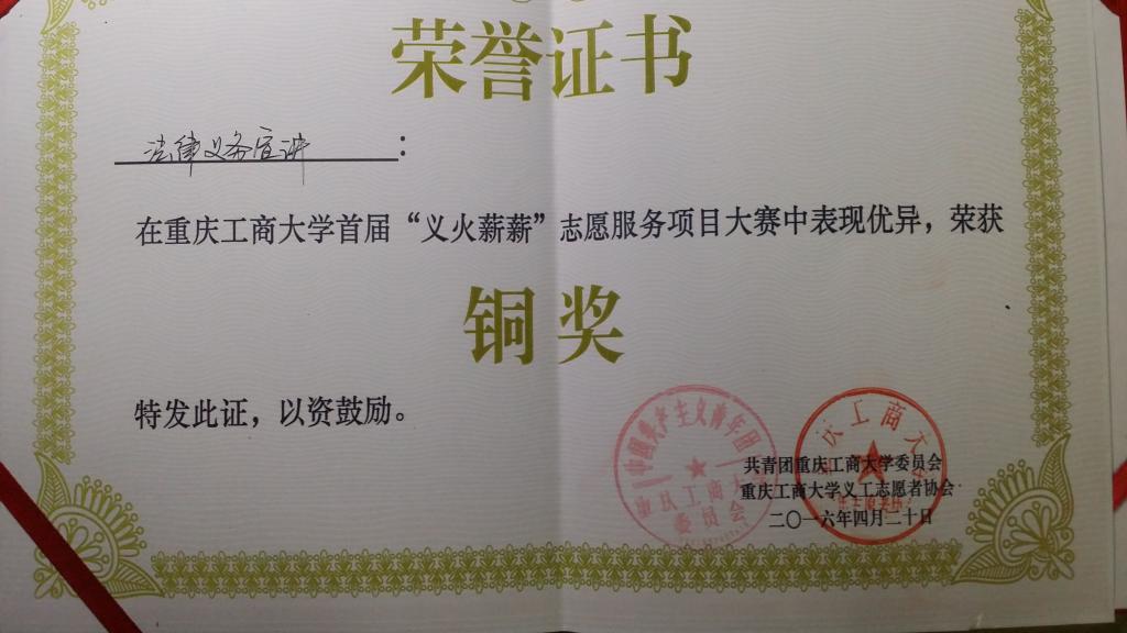 【喜报】祝贺公司律荫源义工志愿者协会在太阳成集团tyc151cc首届“义火薪薪”志愿服务项目大赛中荣获铜奖