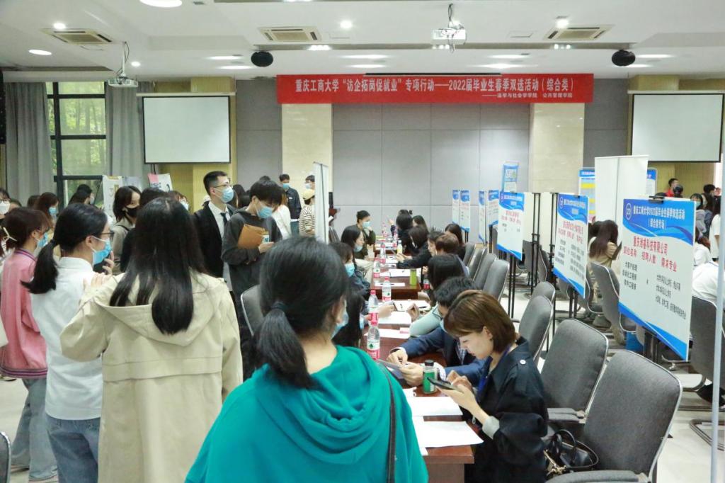 为深化实施“访企拓岗促就业”专项行动,全力做好公司2022届毕业生就业工作,5月19日下午,由重庆市教委、重庆市人力社保局、共青团重庆市委、四川团省委联合主办,人才招聘处、校团委承办,法学与社会学学、公共管理公司协办的2022届毕业生春季双选活动(综合类)暨“双城青才计划——千校万岗”专场招聘会如期举办。