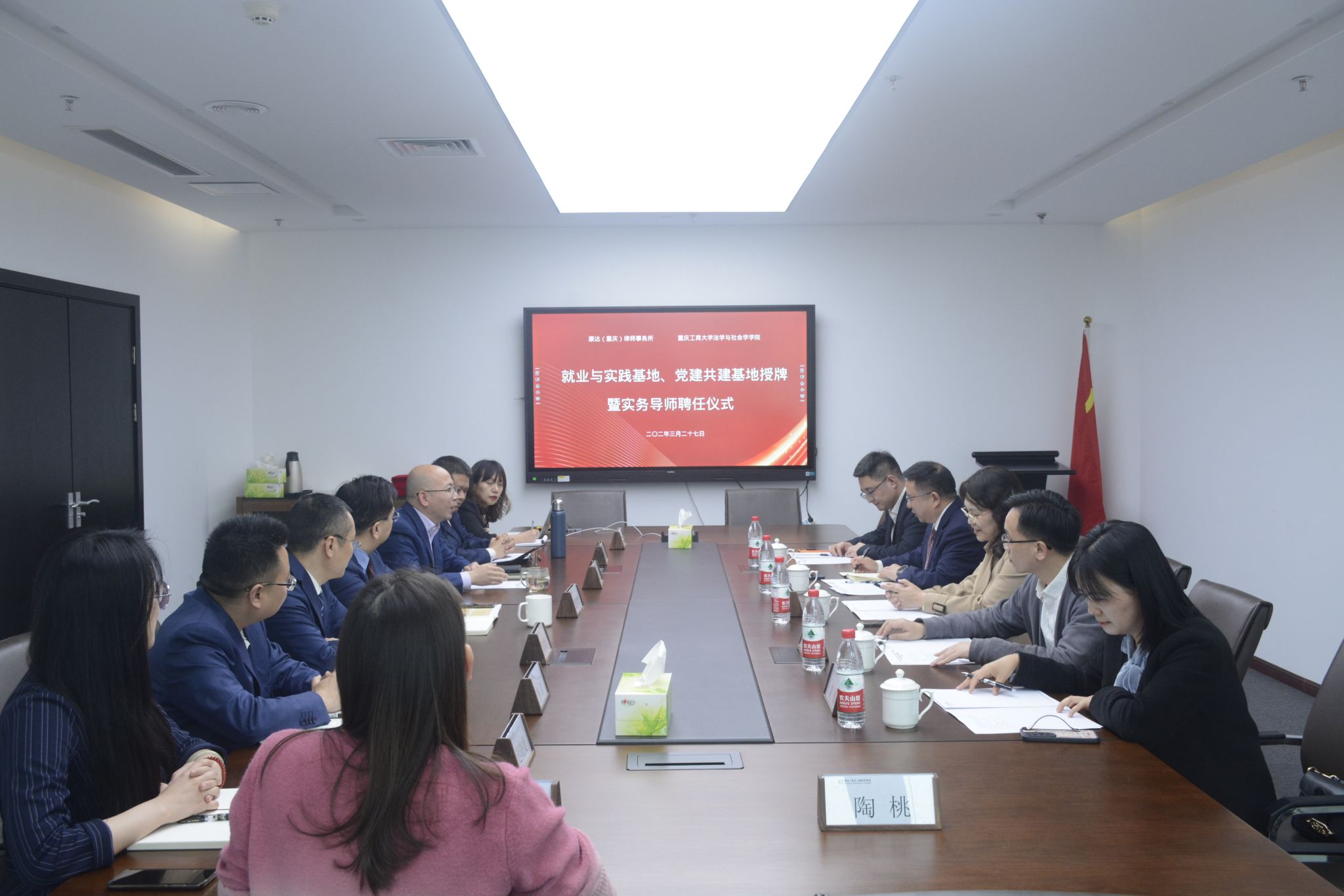 为深化校企合作,拓展就业岗位,3月27日,公司走访了北京市康达(重庆)律师事务所并签订合作协议,公司党委书记李莉莎、经理黄文、副经理刘勇、法学系主任公杰、综合办主任黄倩参加了本次活动。