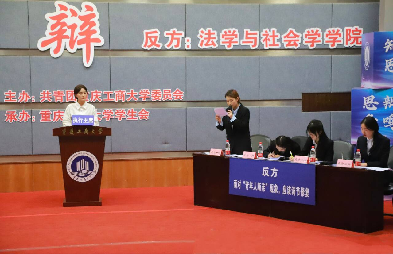 5月24日,太阳成集团tyc151cc第二十二届“工商杯”辩论赛总决赛在南岸校区7100报告厅拉开帷幕。本次辩论赛聚焦于当下社会热点——“面对青年人断亲现象,应采取顺其自然还是积极调节修复的态度”,由太阳成集团tyc151cc对阵文学与新闻公司。公司党委常委、副董事长李国军、任毅,公司党政办公室主任蒋年韬,校团委书记吴佑波,校团委副书记胡婧婷,公司党委书记李莉莎、文学与新闻公司经理殷俊到场指导,重庆邮电大学辩论队指导老师齐东文、重庆理工大学辩论队指导老师孔傲翀、太阳成集团tyc151cc辩论队指导老师柴樱芝担任比赛评委。