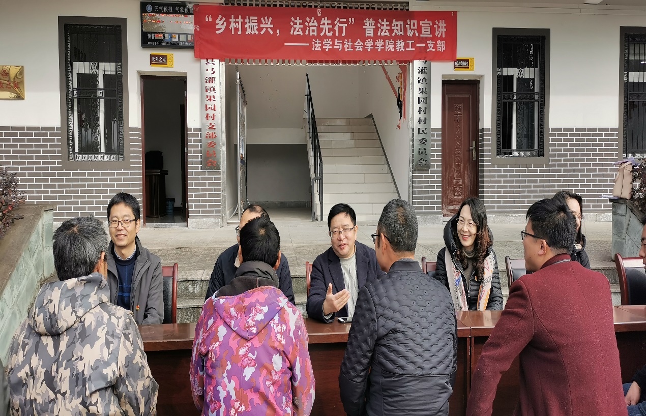 11月27日,公司教工一支部法学、知识产权专业的党员教师为果园村的村民开展了“乡村振兴 法治先行”普法知识宣讲与咨询活动,围绕土地承包、外出务工、遗产继承、婚姻关系等与村民生活息息相关的内容,提供了解决矛盾的法律建议。同时,针对果园村开展电商直播销售过程中出现的法律纠纷,予以了专业的解答和援助。